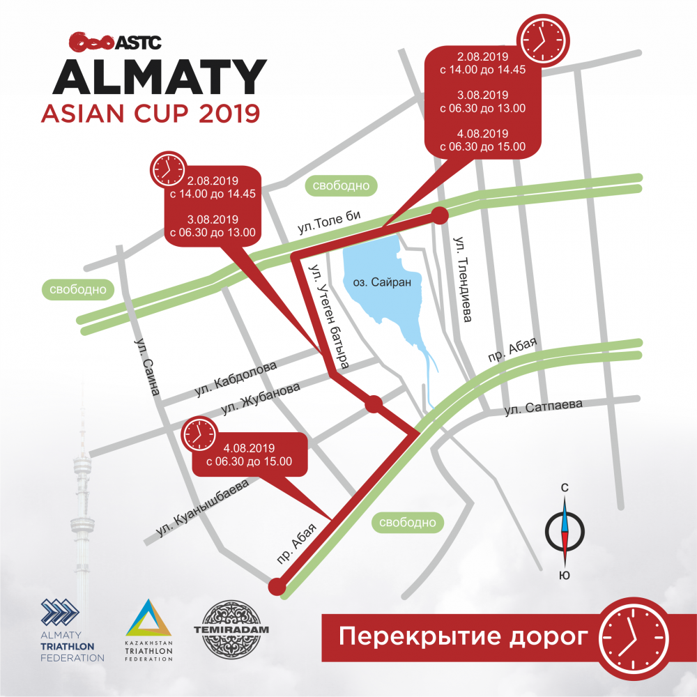 Так по данным ведомтсва и акимата г.Алматы в дни соревнований 2 – 4 августа 2018 года в рамках проведения Кубка Азии по триатлону и будет частично перекрыто движение на дорогах для автотранспорта в местах прохождения велоэтапа соревнований.