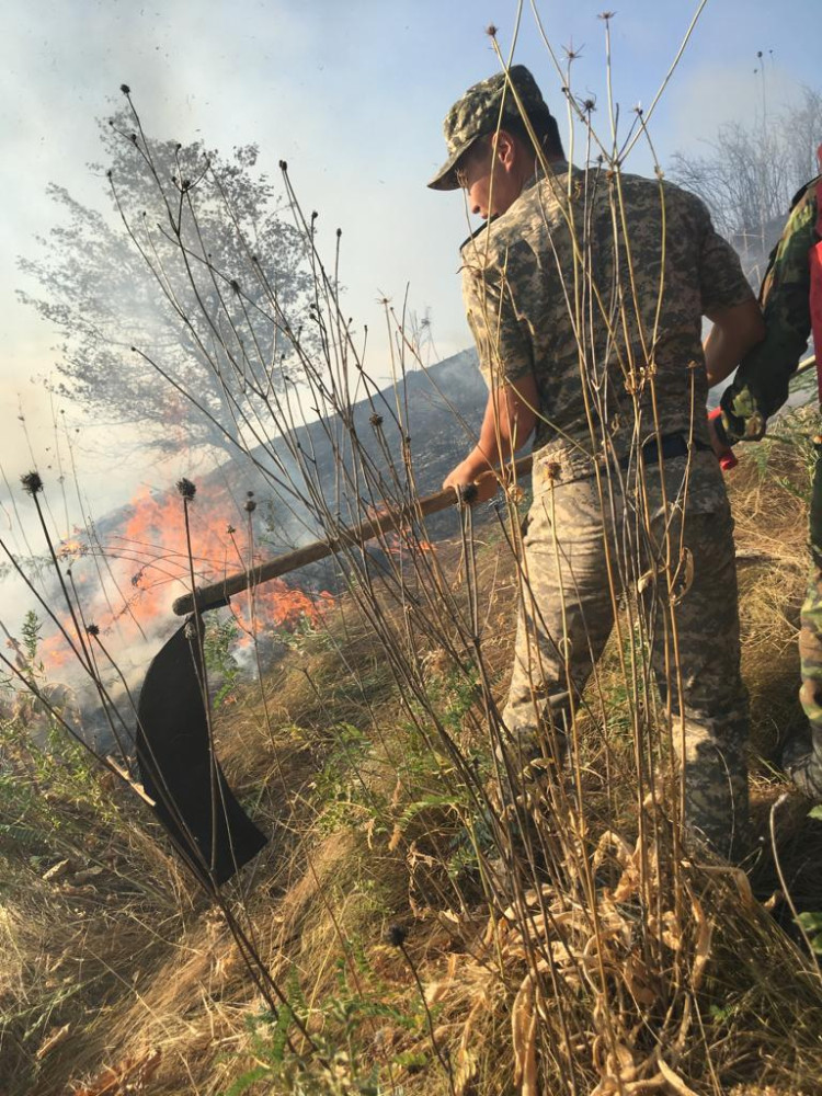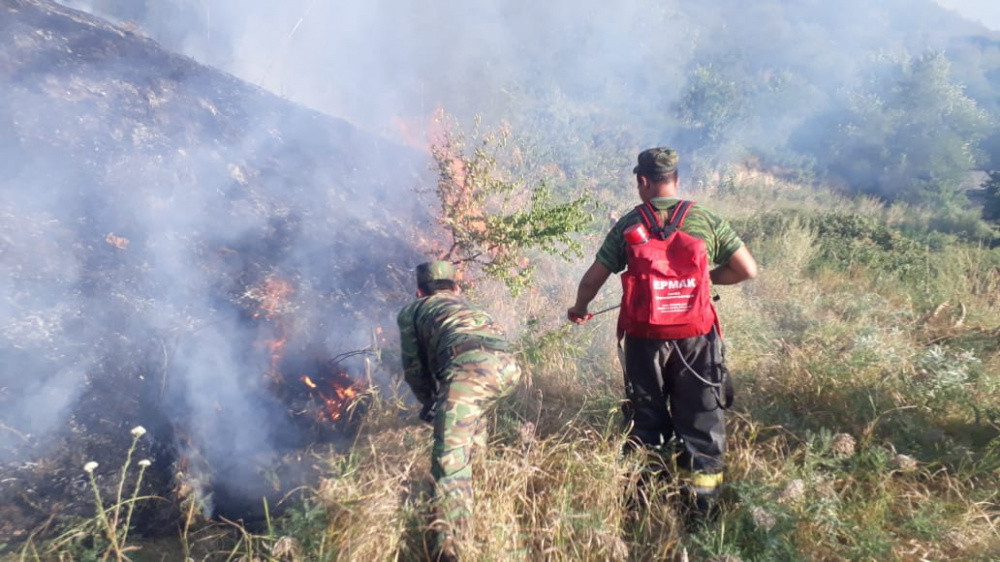 "11 августа в 14:28 на пульт "101" Алматы поступило сообщение о степном загораний в Медеуском районе. Приблизительно на расстоянии одного километра от телебашни Кок-Тобе происходит горение сухостоя на склоне горы на предварительной площади 1 га. Угрозы населенным пунктам нет, так как произведена опашка по периметру. В тушении пожара задействованы 27 человек личного состава и 6 единиц пожарной техники ДЧС, 2 сотрудника и 2 единицы техники ГКП "Алматы тазалык", - говорится в сообщении КЧС МВД РК