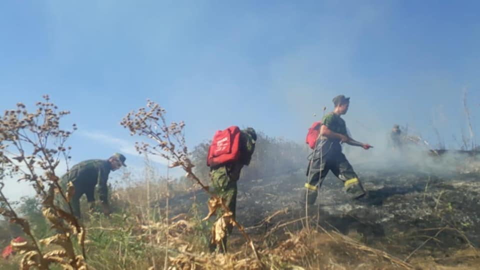 "11 августа в 14:28 на пульт "101" Алматы поступило сообщение о степном загораний в Медеуском районе. Приблизительно на расстоянии одного километра от телебашни Кок-Тобе происходит горение сухостоя на склоне горы на предварительной площади 1 га. Угрозы населенным пунктам нет, так как произведена опашка по периметру. В тушении пожара задействованы 27 человек личного состава и 6 единиц пожарной техники ДЧС, 2 сотрудника и 2 единицы техники ГКП "Алматы тазалык", - говорится в сообщении КЧС МВД РК