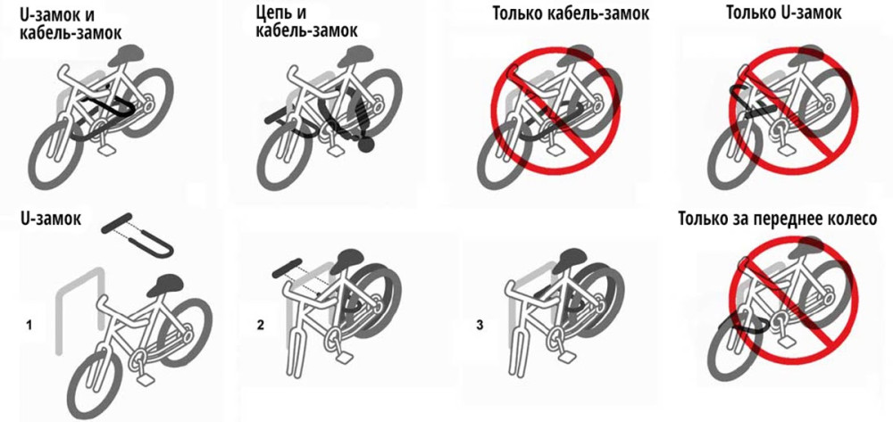 "Лучше пристегнуть велосипед за две детали. Пристёгивая велосипед к ограждению, перилам или подобной конструкции, убедитесь в её надёжности и устойчивости. Желательно оставлять велосипед в поле зрения камер видео. Сделать гравировку на деталях, колесах раме, либо на скрытых деталях велосипеда специальным маркером, видимым при ультрафиолете", - отметили в ДВД Астаны.