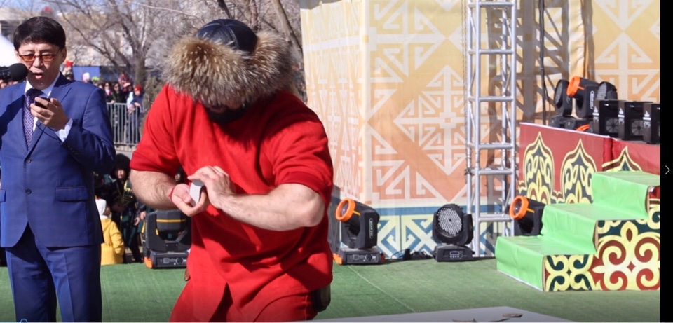 Почетным гостем праздника стал известный казахстанский силач Сергей Цирюльников, который установил мировой рекорд, порвав 32 блокнота за 57 секунд.