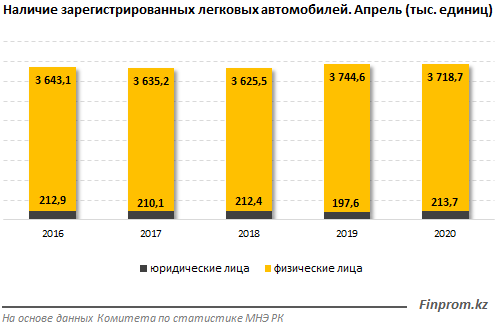 Издание отмечает, что в целом количество зарегистрированных легковых авто в первом квартале этого года сократилось на 0,2 процента по сравнению с прошлым годом и на конец апреля 2020-го составило 3,9 миллиона. Из них 94,6 процента принадлежат физическим лицам.