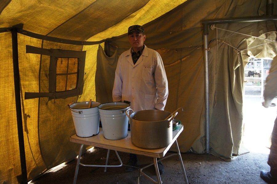 На окраине Чкалова развернул большую палатку передвижной пункт питания, полевая кухня воинской части. Здесь кормят всех без исключения, каждое утро солдаты полевой кухни заказывают продукты, которые привозит машина из города. Готовят завтрак, обед и ужин. Кроме того, пункт питания снабжает сельчан водой и хлебом.