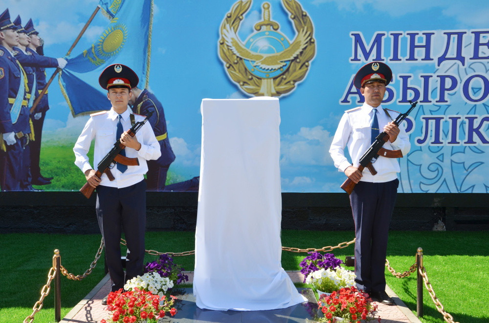 В Шетском районе Карагандинской области дату празднования Дня казахстанской полиции отметили открытием обелиска погибшим при исполнении служебных обязанностей сотрудникам полиции, передает корреспондент BNews.kz.