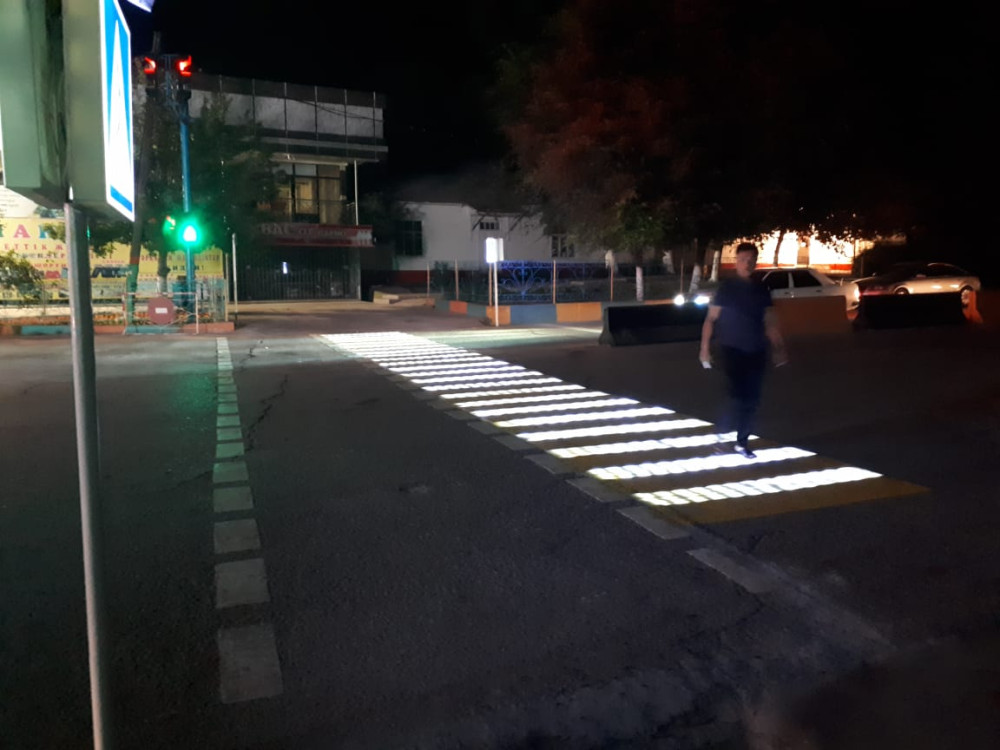 Особенность проекта в том, что пешеходам предоставляется возможность в ночное время безопасно переходить дорогу. Цифровая система с помощью специальных датчиков автоматически подсвечивает участок дороги, по которому пешеходу предстоит пройти.
