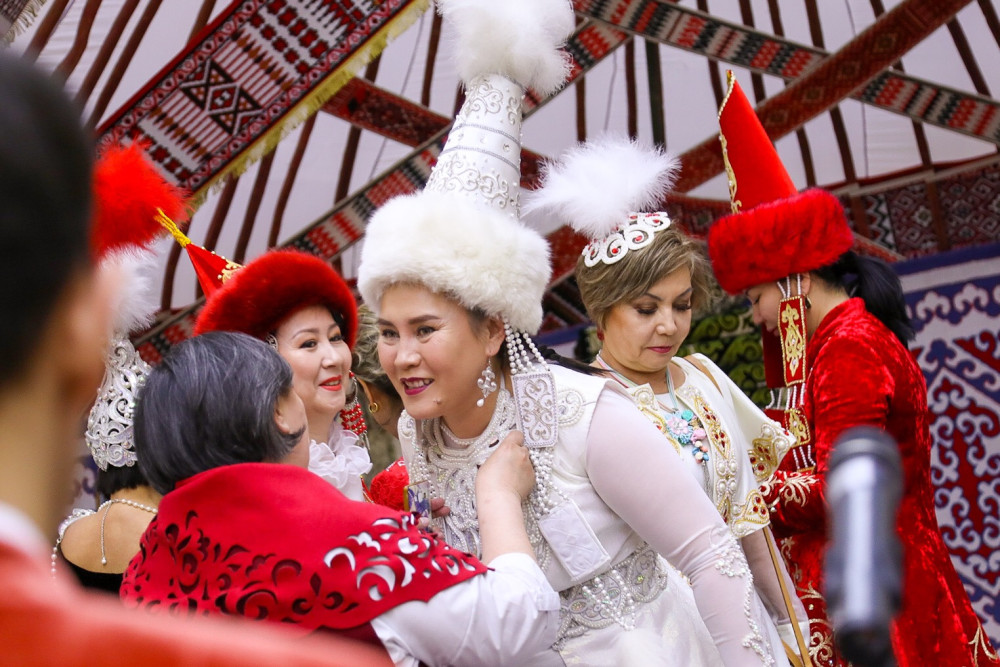 Она отметила, что в ассоциацию входит 15 тысяч женщин по всей стране, они разбиты на три категории – Окрыленные женщины, Золотые апашки и молодое крыло "Жас канаттар". В рамках мероприятия для жен иностранных послов продемонстрировали различные обряды, которыми славится казахский народ.