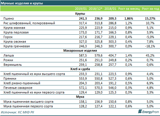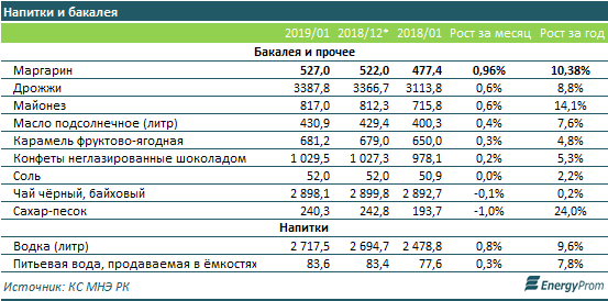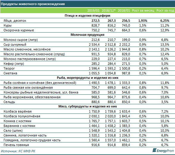 * Важно заметить: в данных Комитета по статистике МНЭ РК в январском документе «Розничные цены на основные продовольственные товары в Республике Казахстан (январь 2019 года)» цены за декабрь 2018 не совпадают с ценами, указанными ранее в документе «Розничные цены на основные продовольственные товары в Республике Казахстан (декабрь 2018 года). Разница по некоторым номенклатурам очень значительная, до 35%. В материале использованы декабрьские и январские данные, предоставленные КС МНЭ РК в январе текущего года.