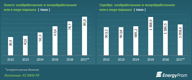 В январе 2018 казахстанские металлурги произвели почти 6 тонн необработанного и полуобработанного золота - сразу на 24,2% больше, чем годом ранее. В многолетней динамике производство золота уверенно растет от года к году. Иная ситуация - для серебра. За январь текущего года было выпущено 59,6 тонны необработанного серебра, что на 12,2% меньше аналогичного периода годом ранее. В многолетней динамике производство серебра сокращается с 2016 года.