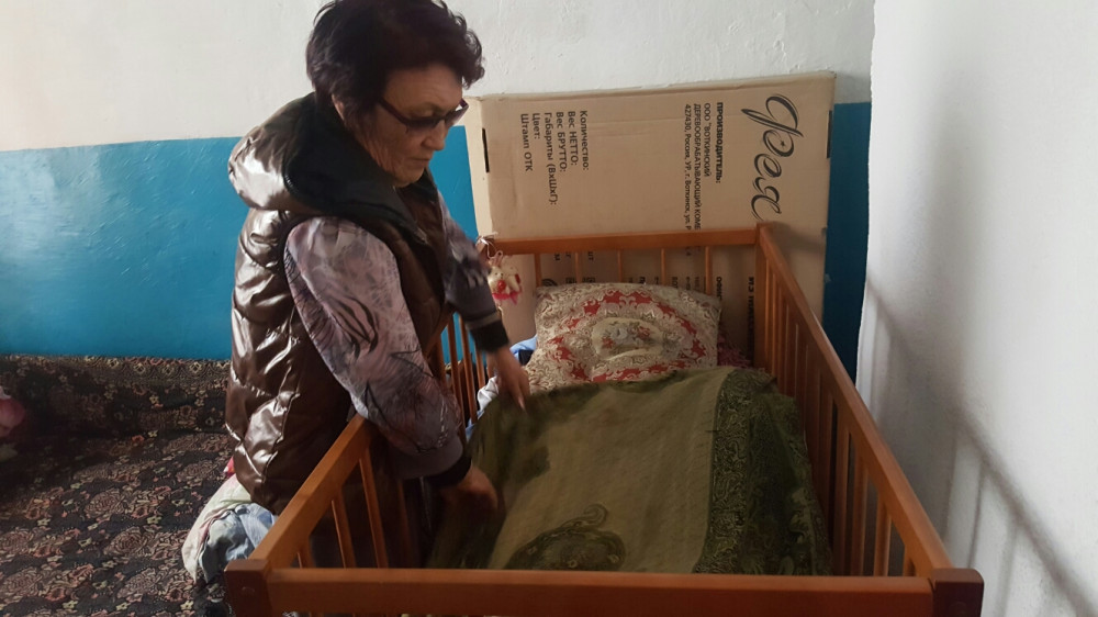 «Сноха лежит в больнице с правнучкой, малышка сильно простыла», - Зоя Шакиевна кивает головой на детскую кроватку. Лицо бабушки светлеет: кроватку с матрацем, игрушками и деньгами принесли незнакомые люди. Запомнила только имя женщины – Жулдыз.