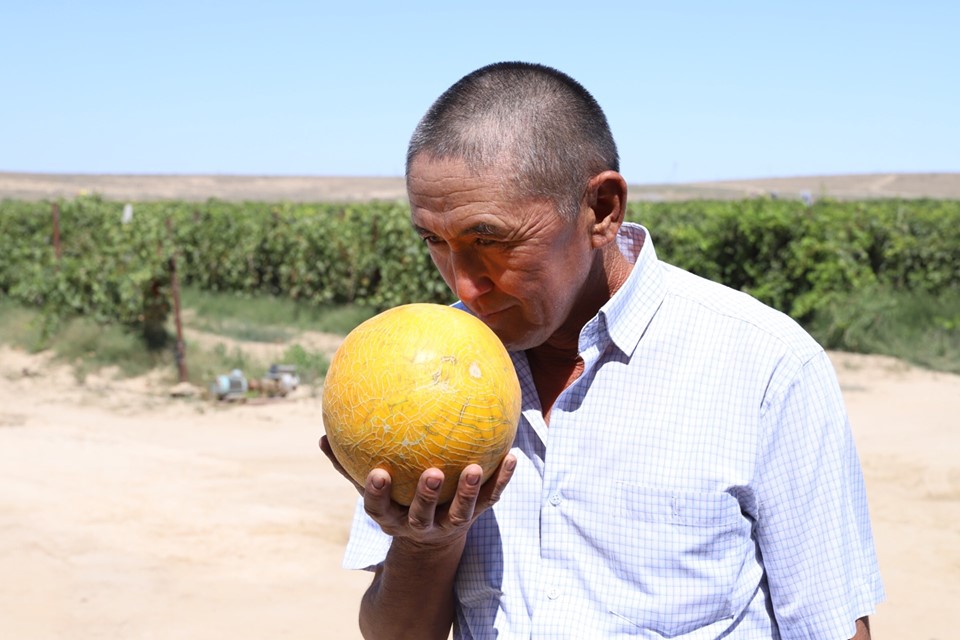 "Я занимаюсь сельским хозяйством и садоводством более 20 лет. На территории в 152 га выращиваю яблоки, помидоры, виноград, дыни, арбузы, огурцы и баклажаны. Местные жители знают мою продукцию, с удовольствием покупают. Поставляю товар на рынки посёлков Жетыбай, Курык и Мунайшы. Часть отвожу в город Актау", - рассказал фермер Тулеген Жалмуратов.