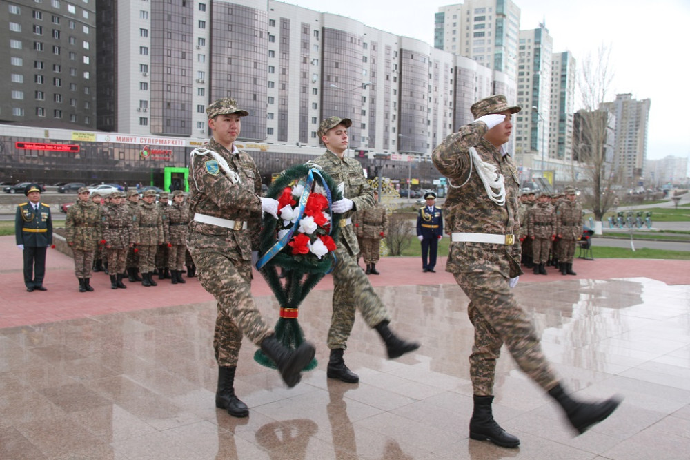 В Астане студенты и офицеры военной кафедры КазГЮУ традиционно возложили торжественный венок к памятнику Бауыржана Момышулы – героя Советского Союза, участника битвы за Москву в Великой Отечественной войне, передаёт корреспондент Bnews.kz.