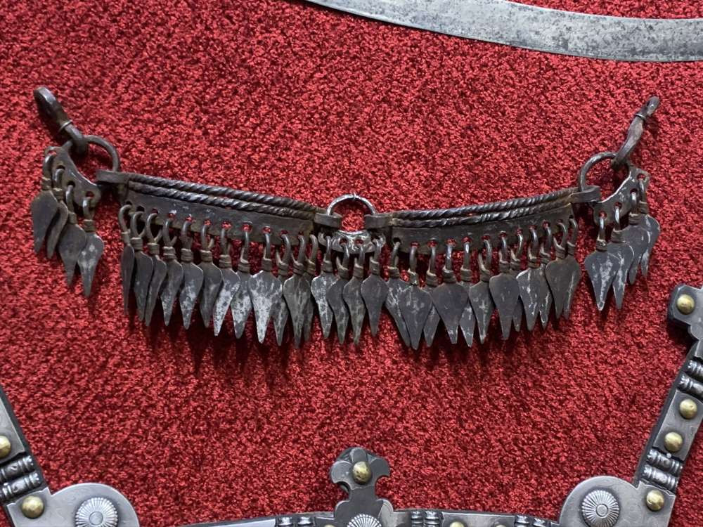 В бою кочевники поражали и лошадей, чтобы обездвижить противника. Чтобы защитить лошадь, на них надевали такую защиту. Предмет выполнен из железа.