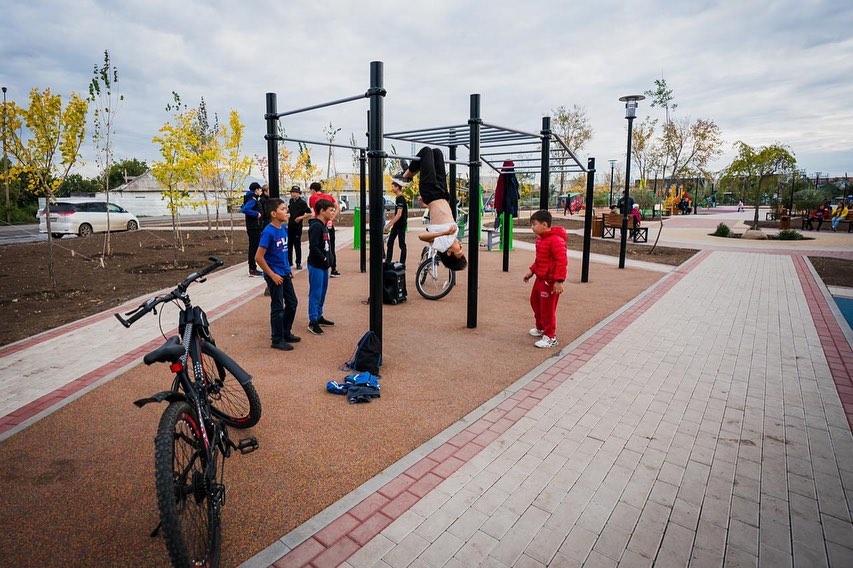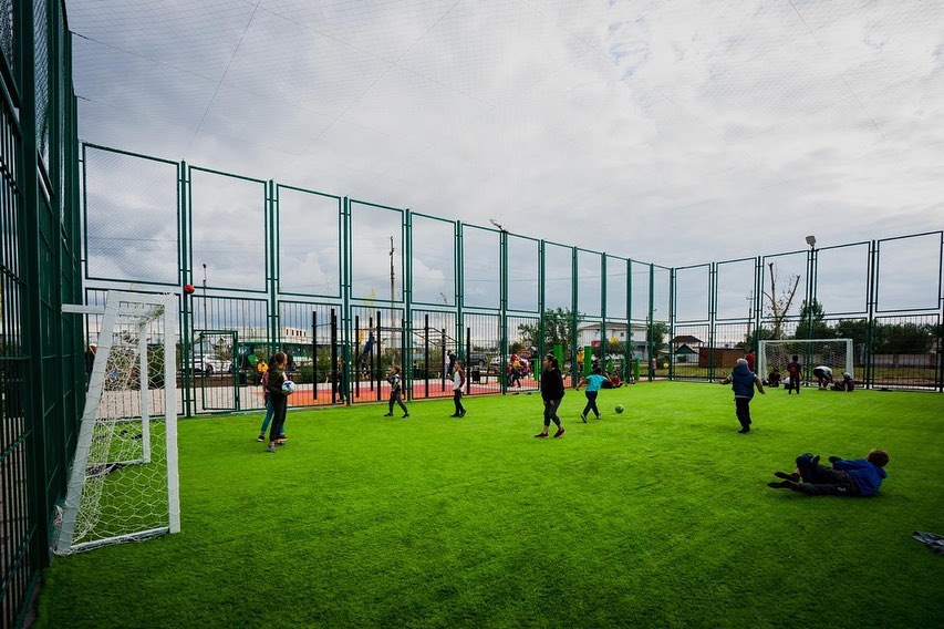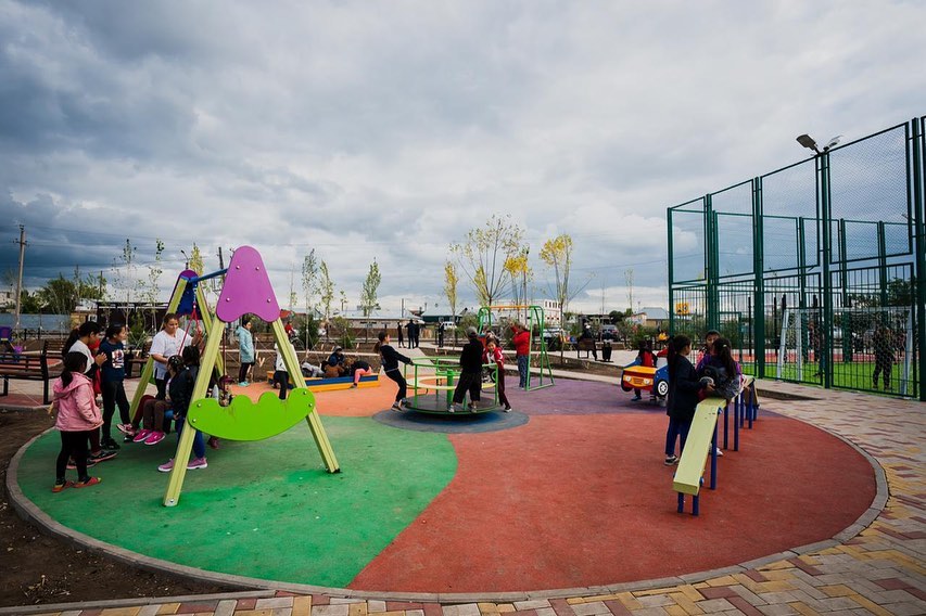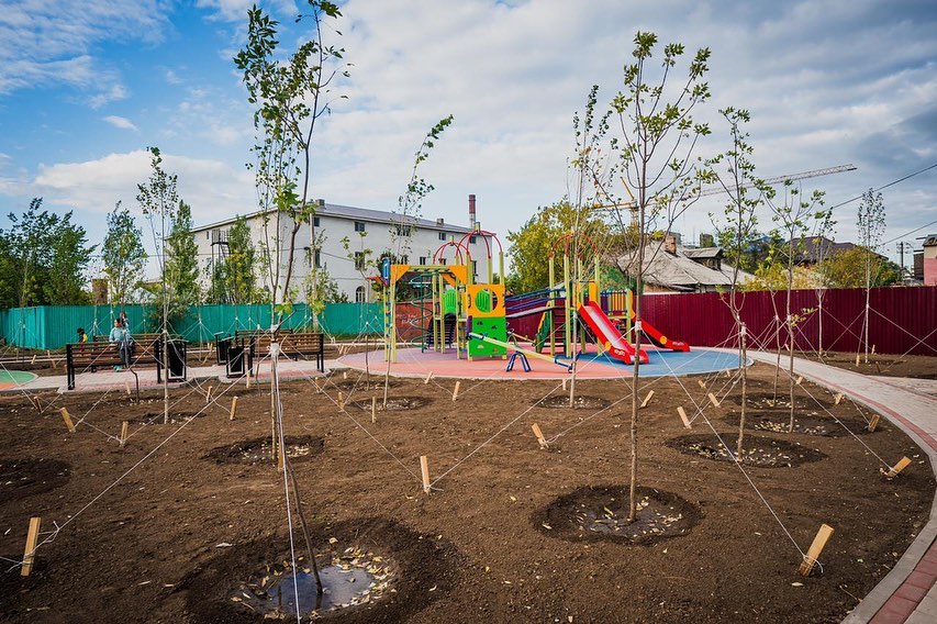 "В районе улицы Акбидай, 11 ранее было болото, сейчас же благоустроили двор с футбольным полем: интересы здесь найдут как дети, так и старшее поколение. В районе улицы Тайбурыл, 9а разбили своего рода свой мини-парк. Здесь были дома 1950-х годов барачного типа. Территорию разделили на несколько зон: зону спортивных тренажёров, игровую зону для детей, футбольное/баскетбольное поле", – пишет аким.