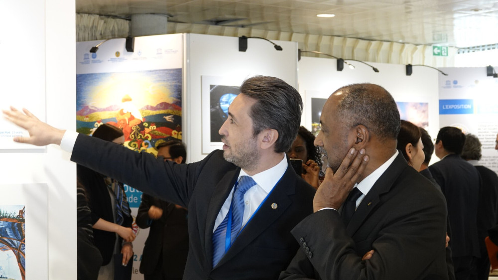 Постоянный представитель Республики Казахстан при ЮНЕСКО, Чрезвычайный и Полномочный Посол РК во Франции Жан Галиев, обращаясь к участникам торжественной церемонии открытия выставки, сказал что подобного рода мероприятия вносят значительный вклад в популяризацию и продвижение положительного имиджа Казахстана на важной международной площадке, наглядно демонстрируя творческий потенциал нашей молодежи и её понимание непреходящего значения богатого