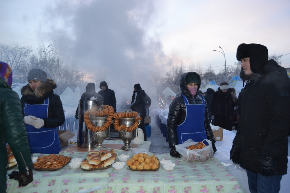 «Для такого большого праздника мы приготовили в казанах свыше тонны таджикского плова. Специально попросили у воинской части 6637 полевую кухню, в которой варим пельмени предприятия «Максимальный размах». Они привезли тысячу кг пельменей. Здесь же горожане и гости города могут погреться горячим чаем с булочками и бурсаками, которые напекли кондитеры», - пояснил предприниматель Абдулалик Рахимов.