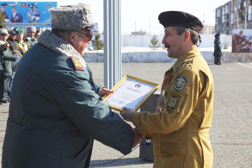 Затем был зачитан приказ Главнокомандующего Национальной гвардии и начальника Военного института, о награждении памятным знаком «25 лет войскам правопорядка» и грамотами более 10 воинов - интернационалистов из числа ветеранов и действующих офицеров.