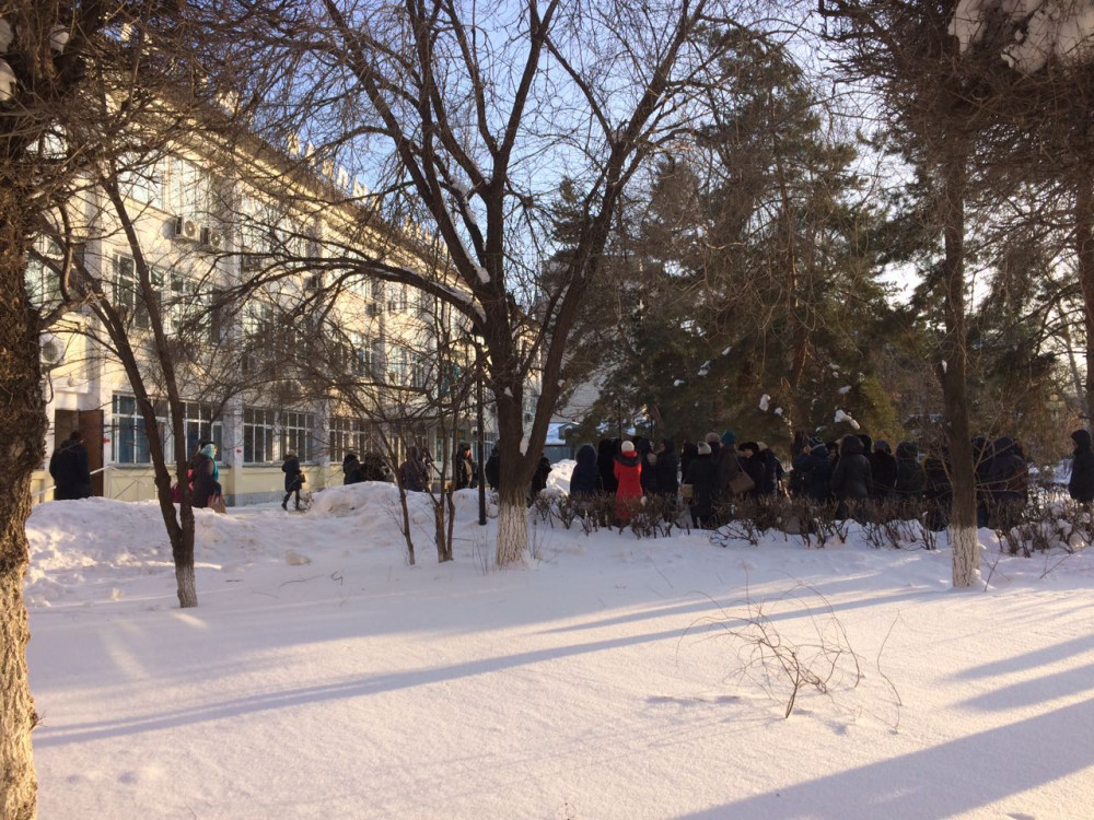Сотрудники местной полицейской службы перекрыли проспект Достык-Дружба, на которой находится поликлиника. Из здания эвакуированы персонал и посетители. На место ЧП прибыли десятки машин противопожарной службы и скорой помощи.