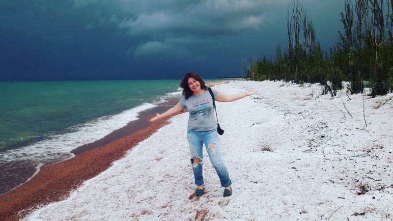 Со слов очевидцев, после тридцатиградусной жары на некоторых участках побережья Иссык-Куля прошел сильный ливень с градом, который перешел в снег.