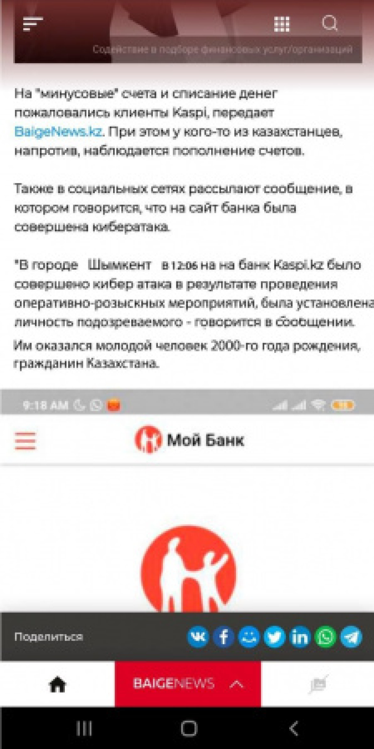 В Сети распространяются фейки про взлом Kaspi от имени BaigeNews.kz