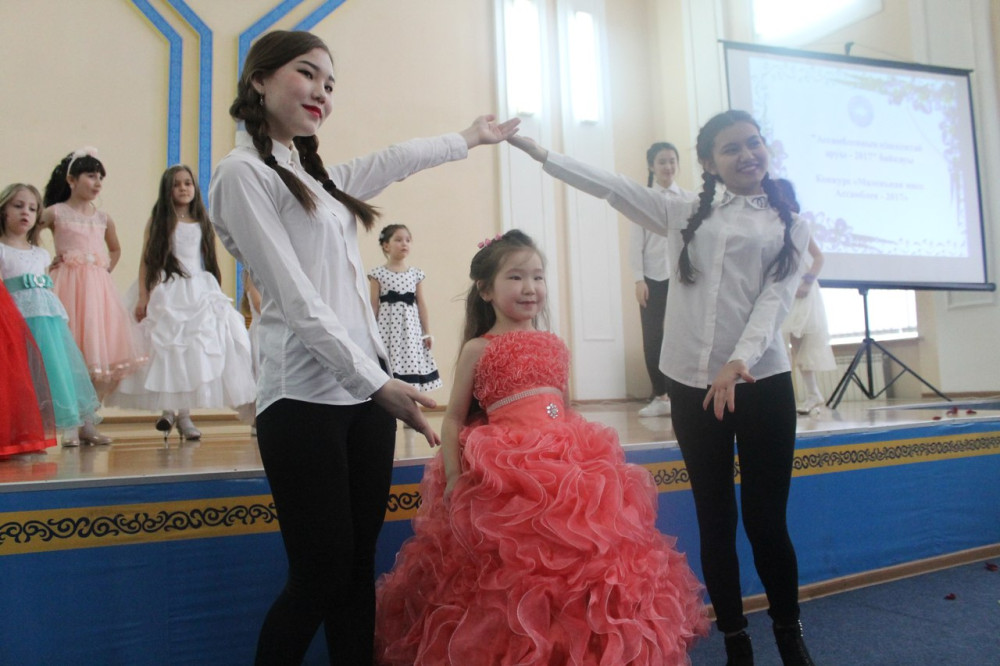 Каждую девочку ведущие представили зрителям. Так, шестилетняя Дарья Телипко, представляет общественное объединение «Северо-Казахстанский областной немецкий культурный центр «Видергебурт». Она учится в средней школы комплекса национального возрождения № 17, мечтает побывать в Германии, говорит с легкостью на трех языках, увлекается ментальной арифметикой, а ее любимое блюдо – лагман.
