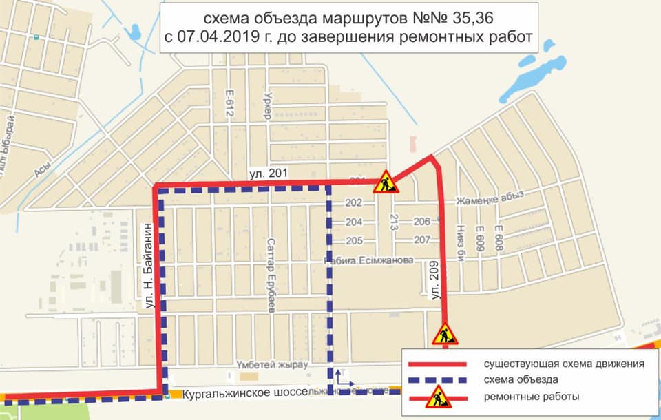 "С 7 апреля в связи с проведением ремонтных дорог маршруты № 35, 36, 73 временно изменят схему движения, и будут курсировать по вышеуказанной схеме", - говорится в сообщении компании.