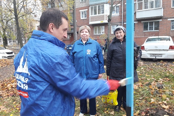 Депутат Тульской городской думы Олег Погорелов торжественно открыл новую сушилку для белья во дворе одного из домов, передает