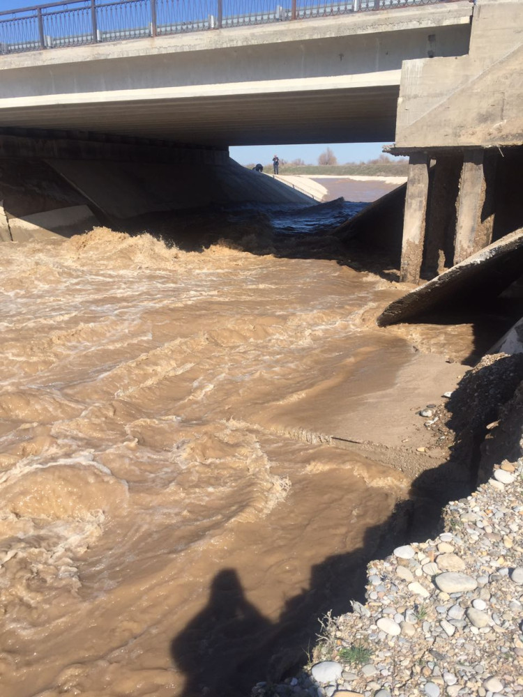 «Работа по восстановления моста, который еще не сдан в эксплуатацию, ведется дорожными службами на 2226 километре международной трассы «Западная Европа-Западный Китай». В связи с ремонтными работами, проезд на этом участке временно ограничен. В данное время для проведения восстановительных работ остановлен поток воды. Проводятся восстановительные работы. Задействовано 18 человек и семь единиц специальной техники», - добавила Зарпа Турысбекова