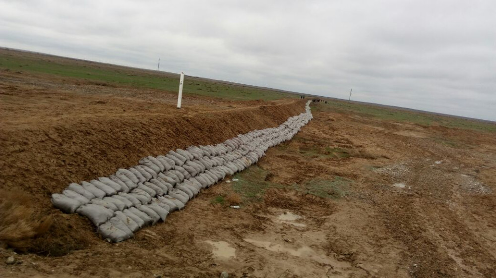 В поселке Темир Отрарского района, ведутся работы по возведению временной защитной дамбы. Она возведены у реки Арысь на участке в 150 метров.