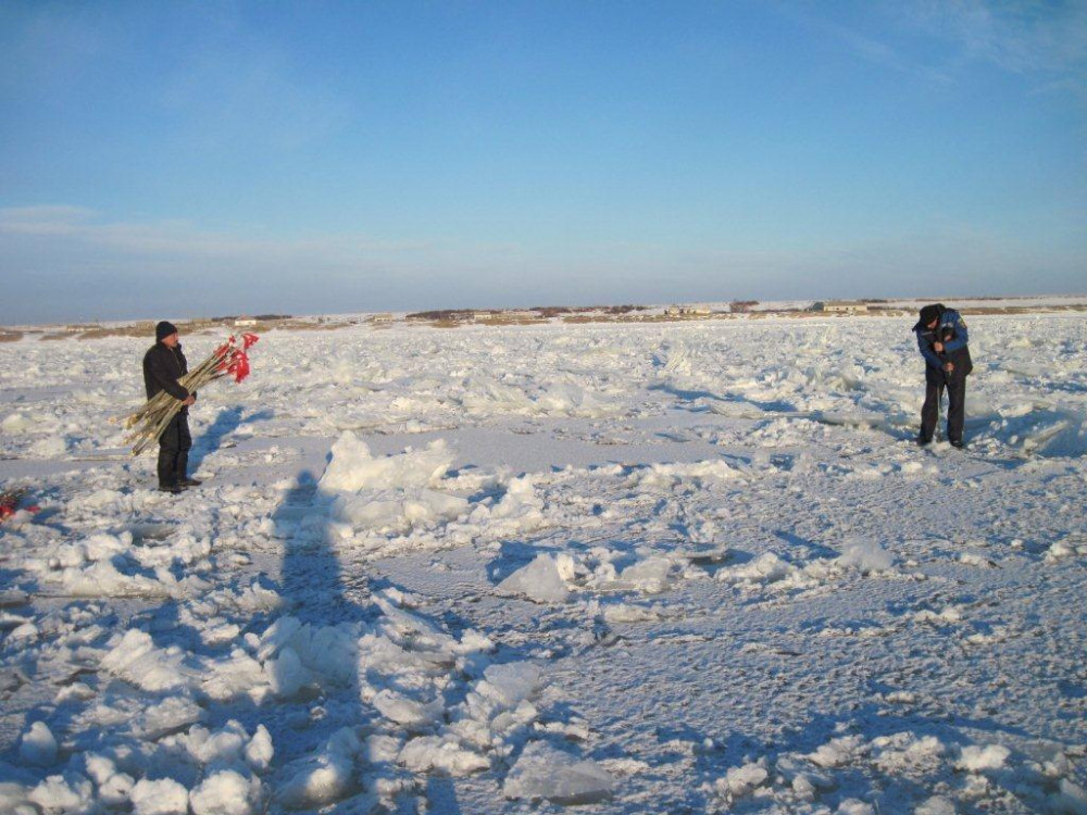 На днях сотрудники Восточного регионального аэромобильного оперативного спасательного отряда измерили толщину льда. Местами она не более 15-18 см. Чтобы лед выдерживал вес автомобиля, его толщина должна быть не менее 25 см, а для грузового транспорта – полметра.
