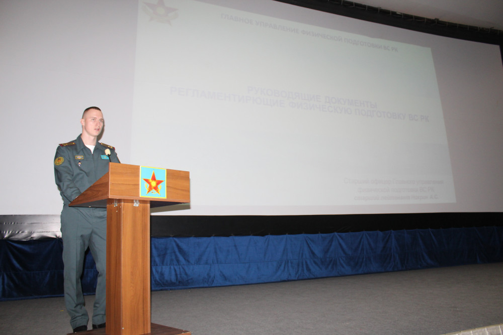 В рамках очередного этапа обучения Главным управлением физической подготовки ВС РК проведены инструкторско-методические занятия по вопросам организации физической подготовки и спортивной работы с командирами (начальниками) воинских частей и учреждений Шымкентского и Таразского гарнизонов.