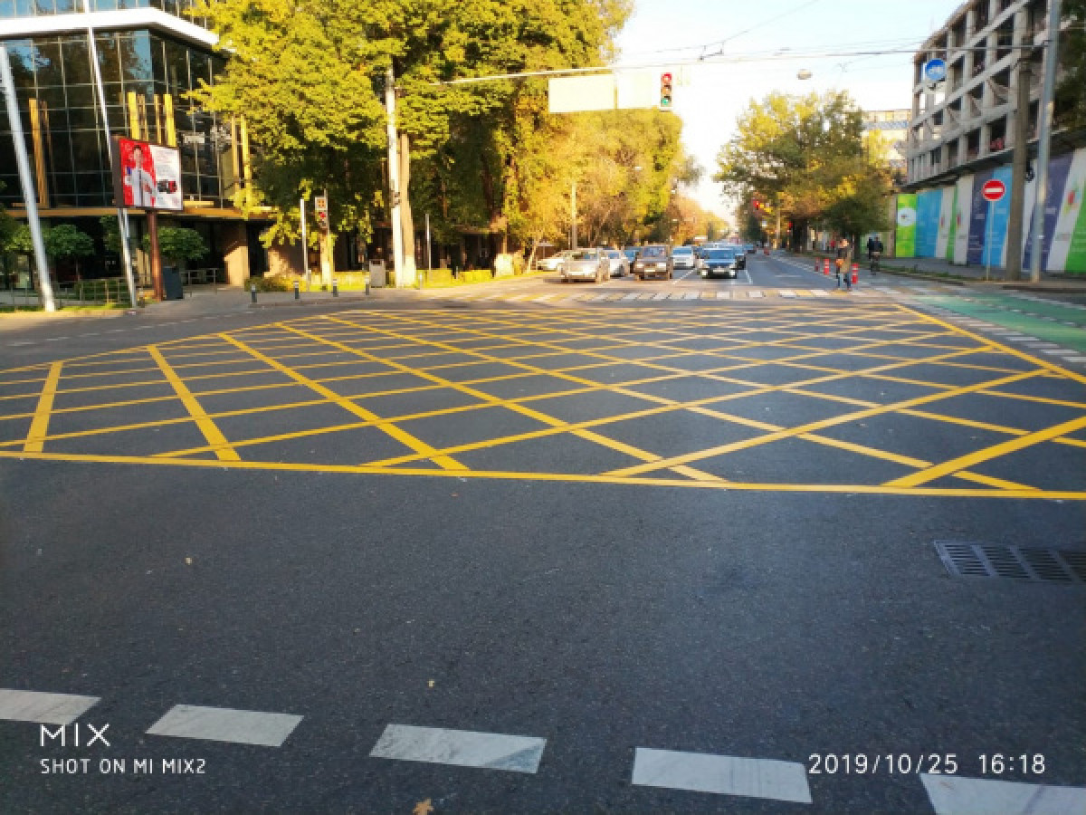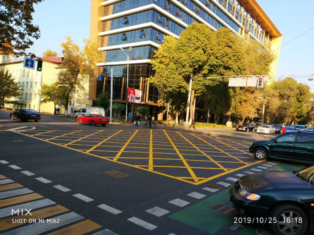 "В целях предотвращения нарушений водителями транспортных средств ПДД на пересечении улиц Желтоксан и Макатаева в зоне перекрестка экспериментально нанесена "вафельная" дорожная разметка желтого цвета", - говорится в сообщении.