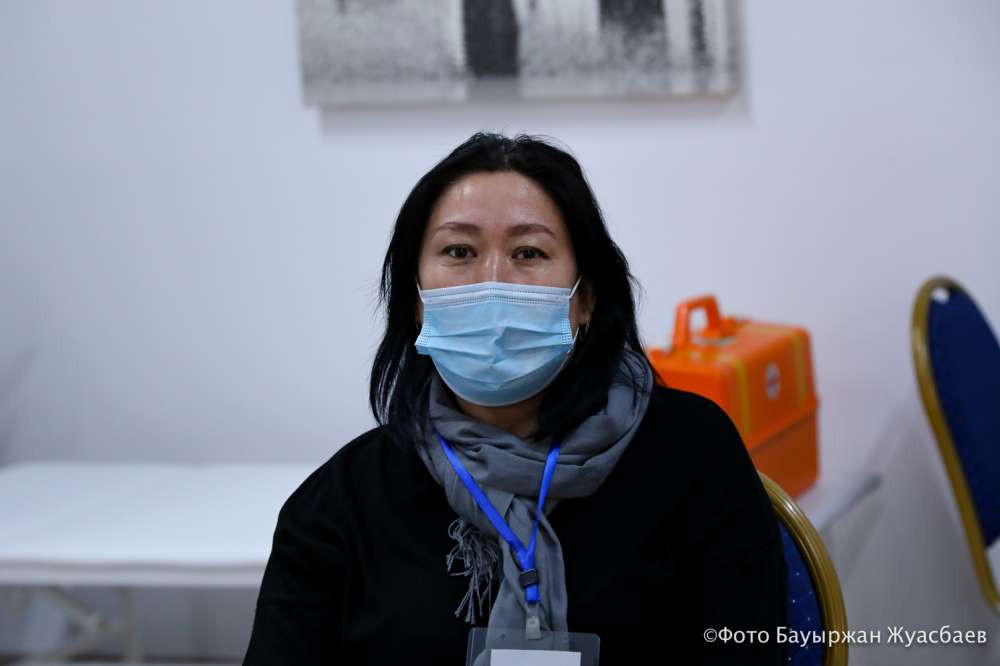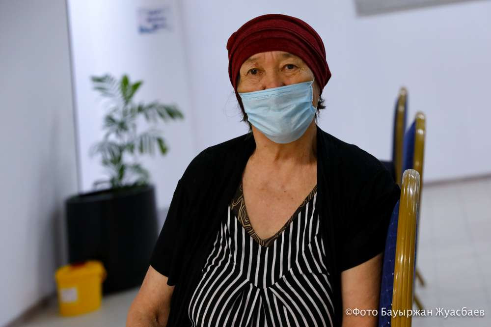 "Привиться я решила сама, ради своего здоровья, ради детей, внуков. Прививку получила без боли. Вроде все нормально. Я не болела коронавирусом. Но будем все равно соблюдать карантин. Мы уже два года в этом состоянии привыкли. О прививочном пункте я узнала из СМИ. Здесь мне проверили давление, сердцебиение, узнали, какими болезнями я болела", - рассказала женщина по имени Жанар.