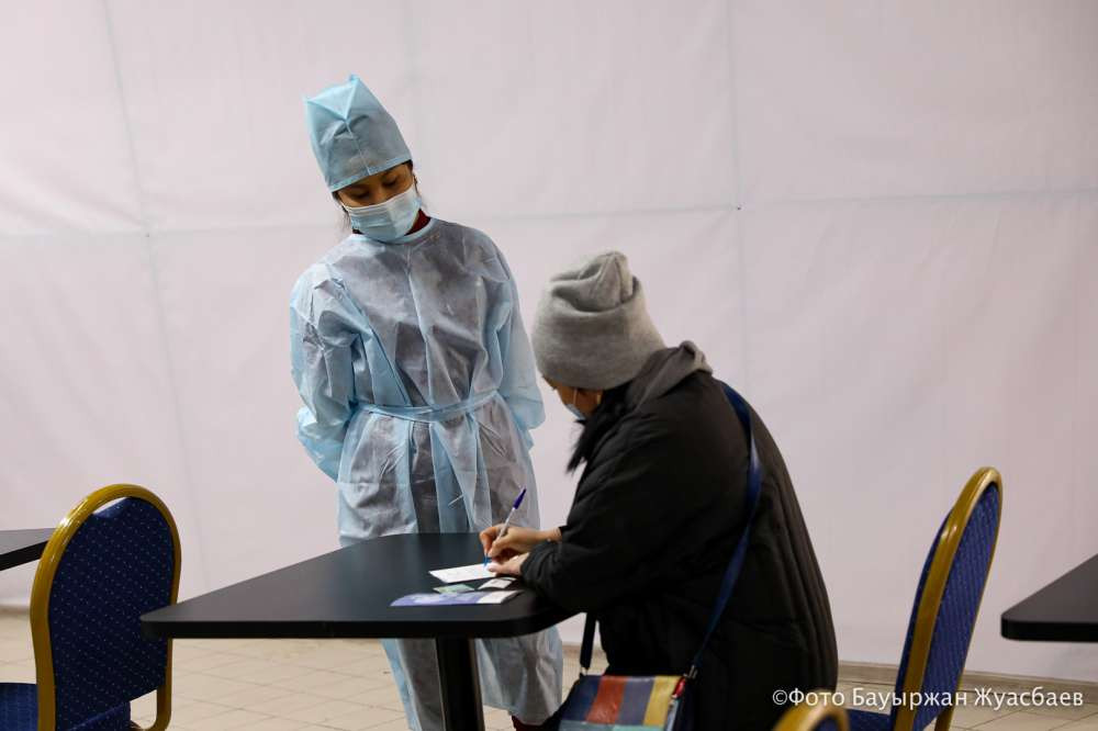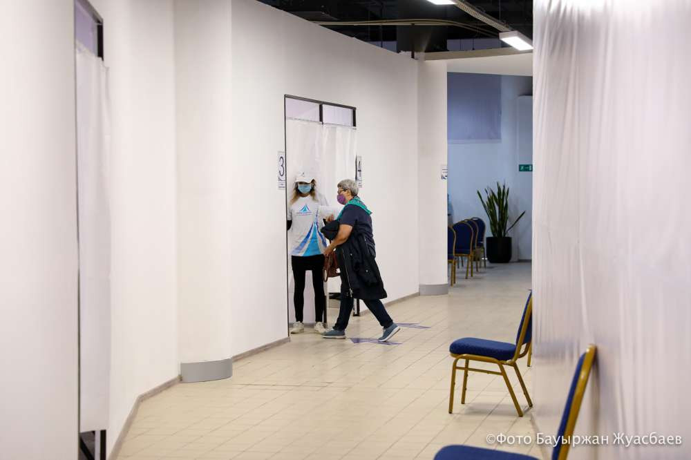 "Два кабинета терапевта и два - прививочных. Пациента осматривает врач, потом он идет на прививку. Это медики поликлиник №7, 10. Работа начинается с 10.00, в 16.00 смена меняется, приезжает другая бригада", - сказал Арман Айдарханов.