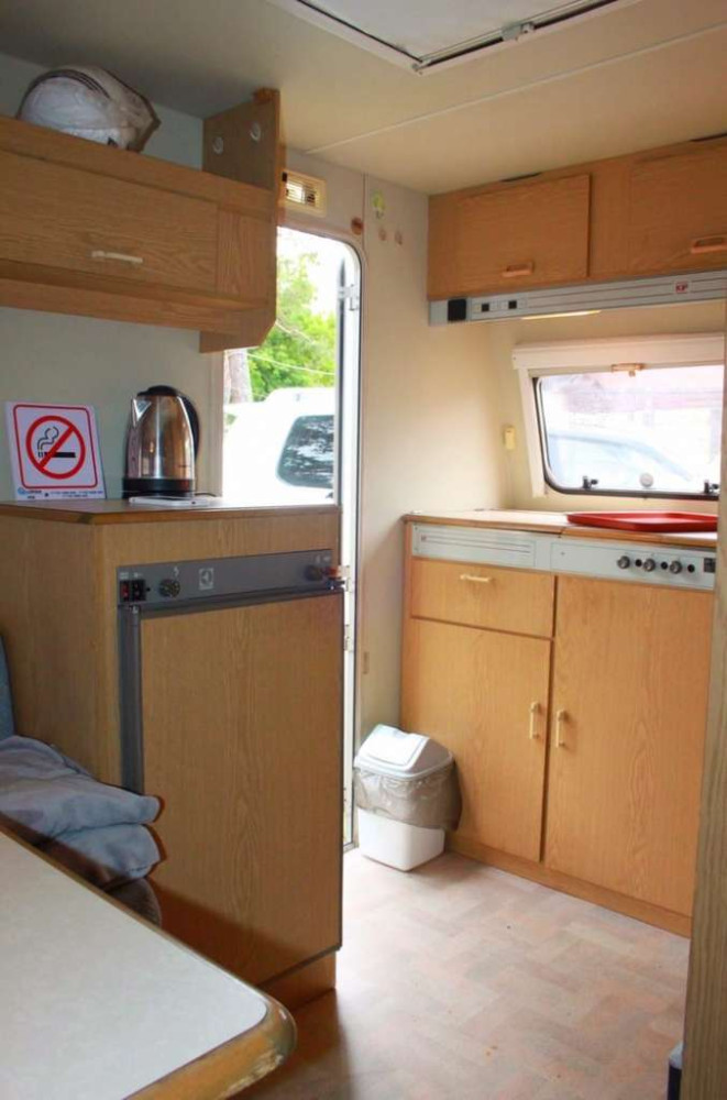 В маленьком и уютном домике на колесах, действительно, есть все. Признаться, когда мне приходилось жить в общежитии, удобств было намного меньше, чем в этом автодоме. Собственная газовая плита, где можно приготовить завтрак на природе, отсеком ниже расположен небольшой, но достаточно вместительный холодильник. Розетки – что тоже очень важно. Ведь куда мы без огромного количества гаджетов?! С другой стороны от плиты и удобств - уютный диван и стол. Легким движением – диван и стол превращаются во вместительную двух, а то и трех-спальную кровать.