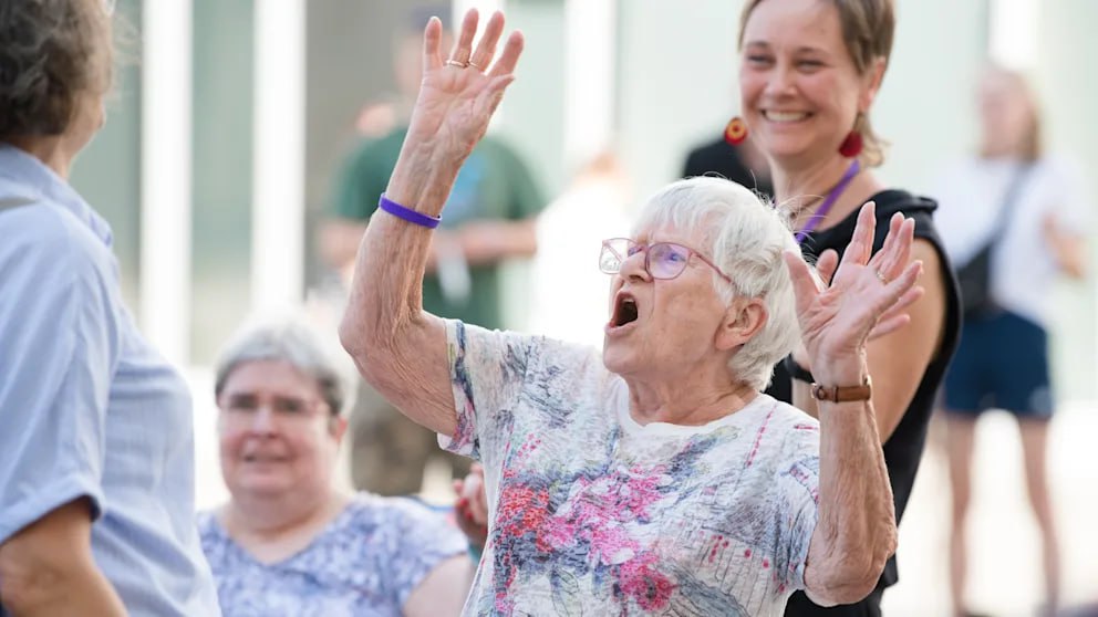 "Последний раз я ходила на танцы ещё при ГДР, — рассказала BILD 94-летняя Бриджит Рабе. — Если бы мои ноги были здоровее, я бы танцевала, как все. Музыка здесь замечательная".