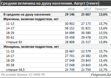 В гендерном и возрастном разрезе отличия в величине прожиточного минимума весьма ощутимы. К примеру, у мужчин и подростков-мальчиков от 11 лет в среднем величина прожиточного минимума составляет 32,8 тыс тенге, а у женщин и подростков-девочек - всего 26,4 тыс тенге.