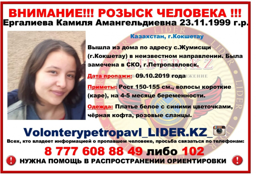 Всем, кто что-либо знает о местонахождении Камили Ергалиевой, просят сообщить по телефону 8 777 608 88 49 либо 102.