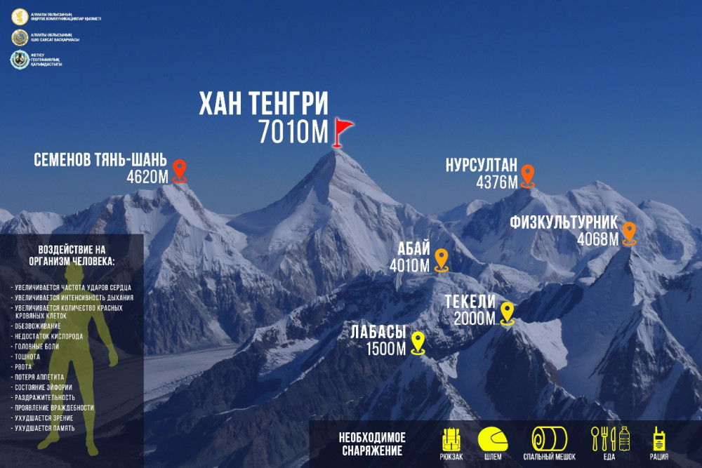"Цель медиа-экспедиции - укрепление развития экотуризма в Казахстане и популяризация горного туризма Алматинской области. Мы специально в качестве гостей привлекли Айсулу Азимбаеву, Ануара Нурпеисова и Александра Кузнецова для максимального распространения и охвата в интернет пространстве. Стоит отметить, что это даст положительный медийный эффект в продвижении горного туризма Казахстана. К тому же, что не маловажно, в отличной физической форме и покорили немало других вершин. Восхождение на Хан-Тенгри в топ-10 самых сложных вершин, среднегодовая температура там минус 28 градусов", - рассказал руководитель управления внутренней политики Алматинской области Рустам Алпысбаев