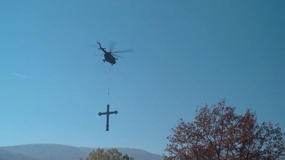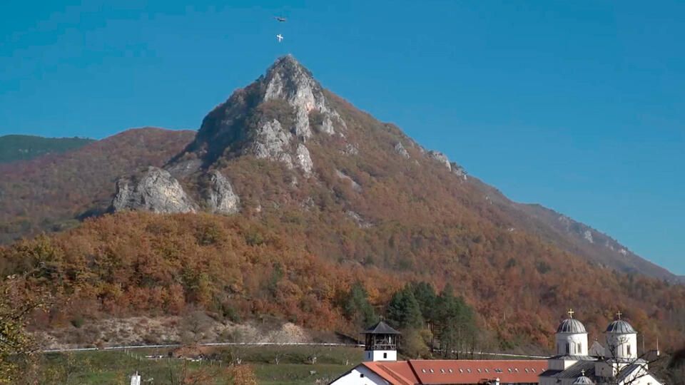 ВВС и ПВО Сербии установили с помощью вертолета Ми-17 на горе над уникальным средневековым православным монастырем Милешева металлический крест, сообщило министерство обороны страны, передает РЕН ТВ.