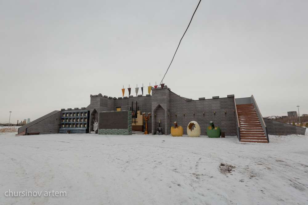 Окунуться в волшебную атмосферу зимней сказки поможет замок, расположенный в Триатлон-парке.
