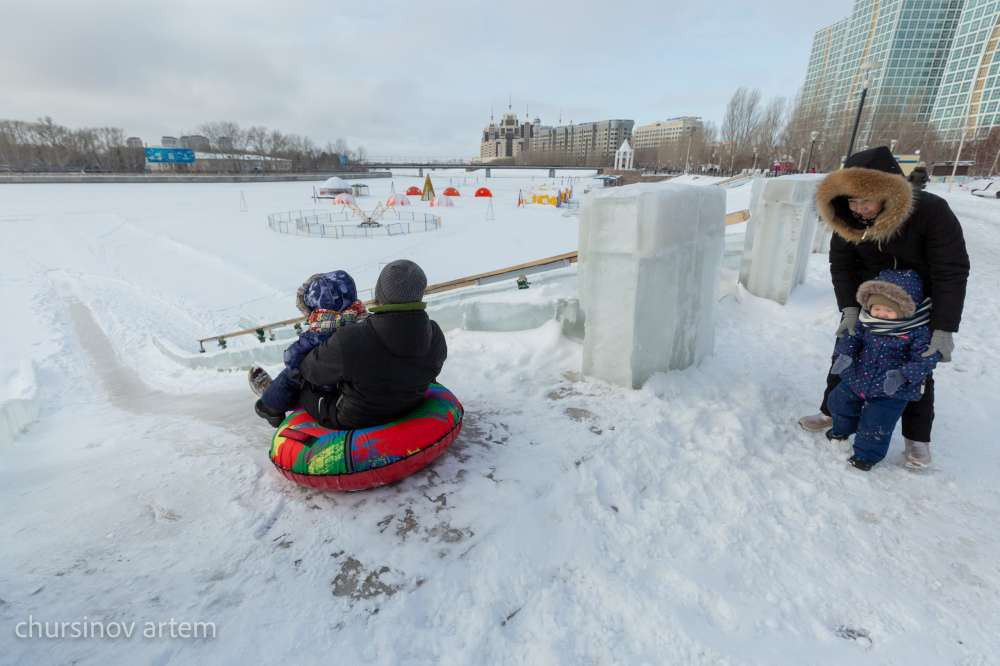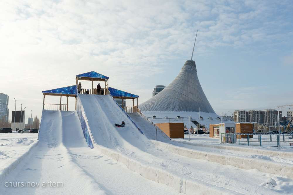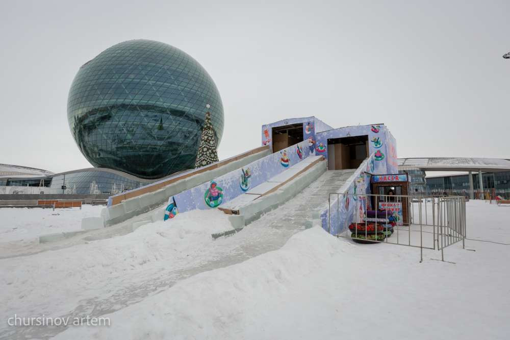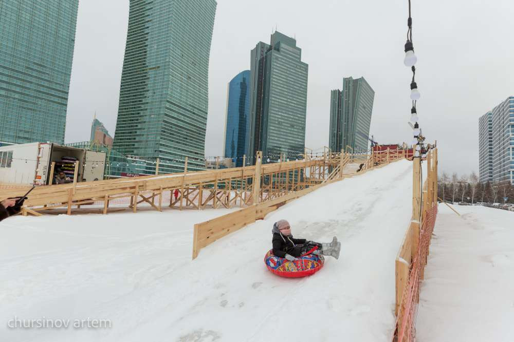В Нур-Султане уже открыли ледовые городки, катки, крутые горки и зимние замки. Одна из крутых горок расположена в Президентском парке на левом берегу столицы. Но чтобы с нее скатиться, необходимо иметь тюбинг либо специальную доску. Также можно взять в аренду тюбинг на час за 500 тенге.