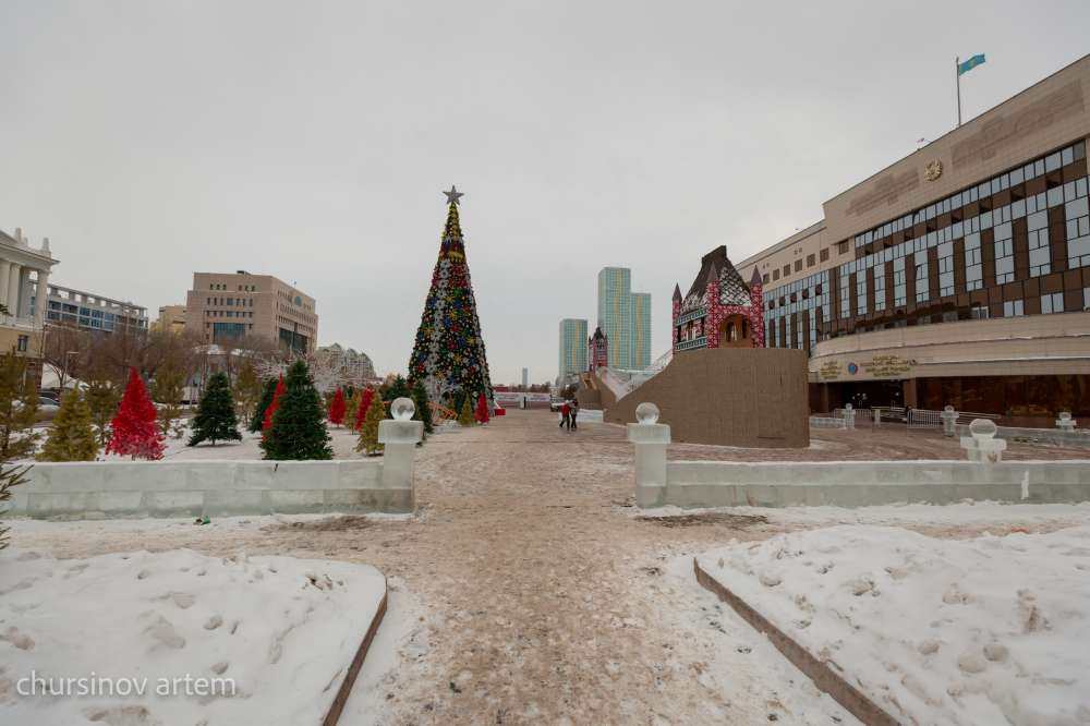 Порадовать себя и своего ребенка можно и на старой площади возле столичного акимата. Здесь установлены высокие горки, зимние елки и ледяные фигуры.