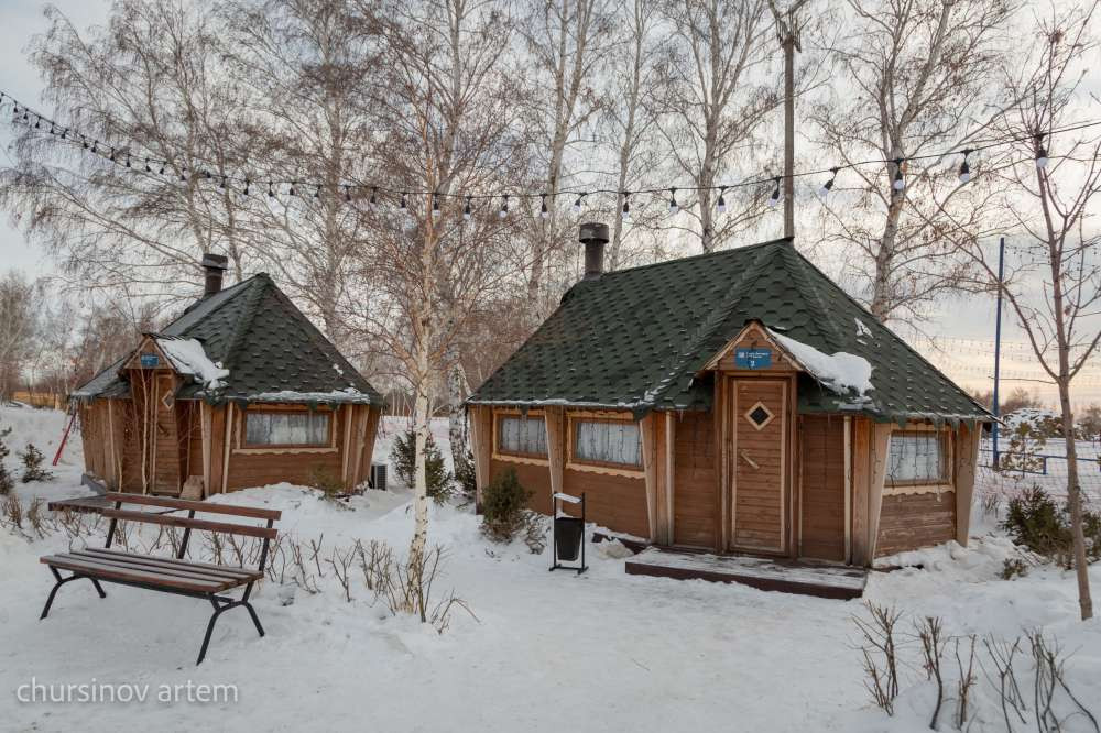 Из зимних развлечений - можно покататься на горке и на собачьей упряжке либо на снегоходе, а также покормить белых зайцев.