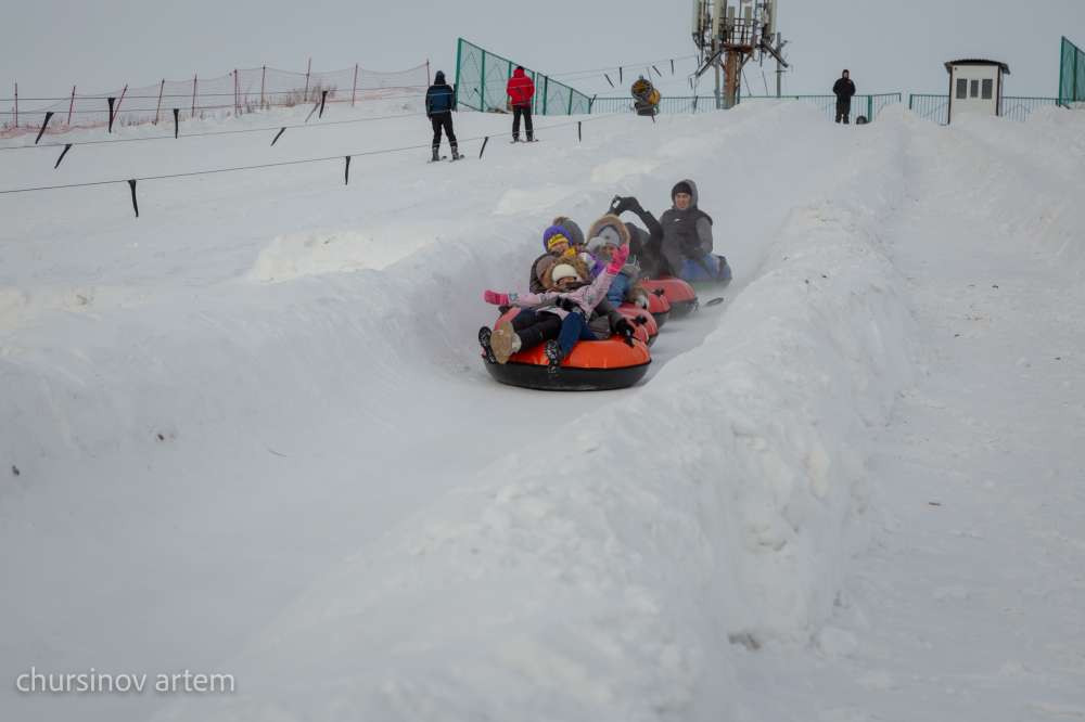 Дети также смогут спуститься с горки на сноутюбингах. Прокат сноутюбинга с подъемником стоит 4 000 тенге.