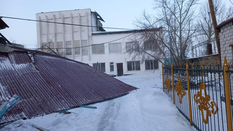 В Буландынском районе Акмолинской области сильным ветром сорвало кровлю с административного здания АО "НК "КТЖ", передает