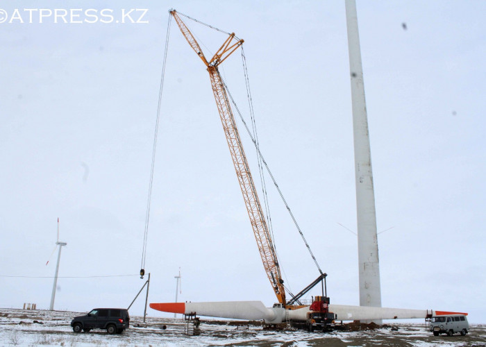 Местность, выбранная под установку "ветропарка" в Исатайском районе области, является бывшим дном Каспийского моря, и строителям на этом участке приходилось искать твёрдый грунт.