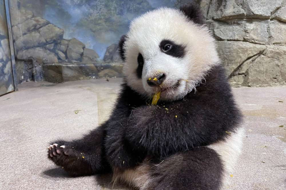 У пары есть детеныш мужского пола, Сяо Ци Цзи. Он родился в Смитсоновском зоопарке в 2020 году.