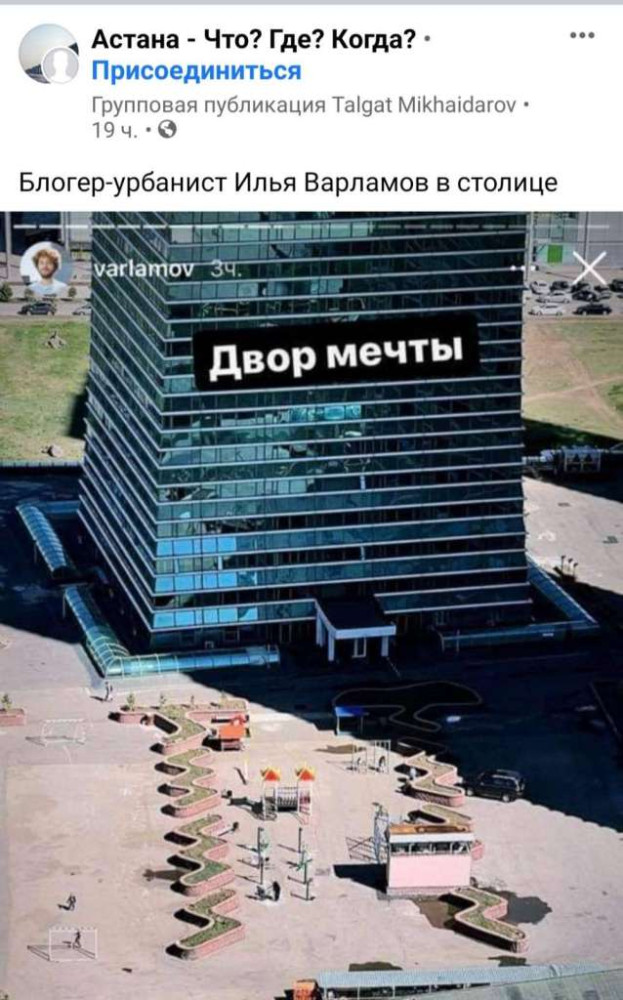 Тем временем, накануне, в группе "Астана - Что, Где, Когда? пользователь Facebook опубликовал скрин сториз блогера, на котором виден один из столичных дворов.