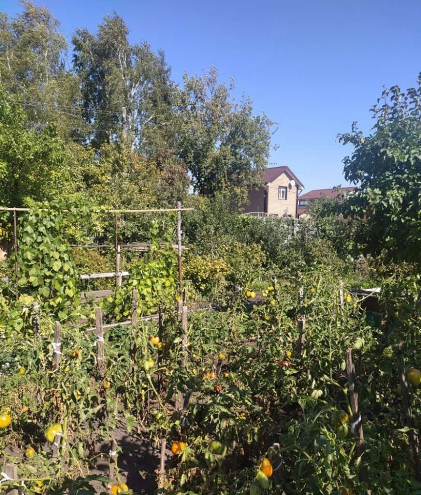 Подъезжаем к дачам. Направляемся во владения Владимира Ивановича. Ухоженный домик, территория вся засажена. Томаты зреют, ветки яблонь и груш гнутся от плодов к земле. Тут и малина и смородина. А дальше его Величество виноград….