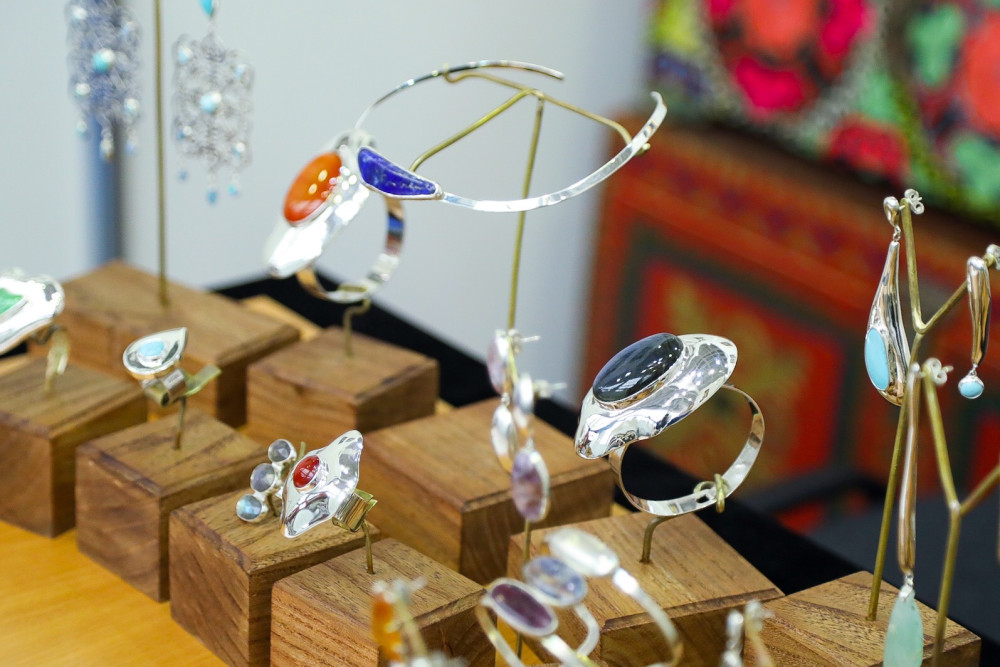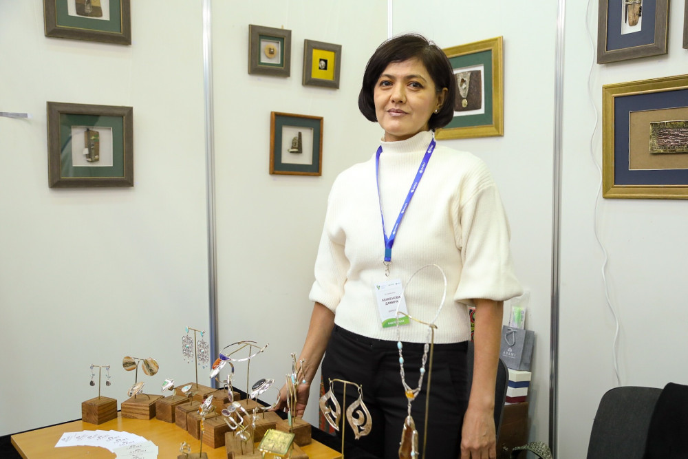 Дизайнер и основатель Adami Jeweller's workshop Дамира Бикенова из Астаны производит ювелирные украшения ручной работы. Женщина самостоятельно освоила ювелирное искусство и теперь продаёт собственные работы через страницу в Instagram. Она призналась, что впервые участвует в выставке Ulttyq onim, однако ранее выставляла свои изделия на других площадках и считает такой опыт хорошей рекламой для частного бизнеса.